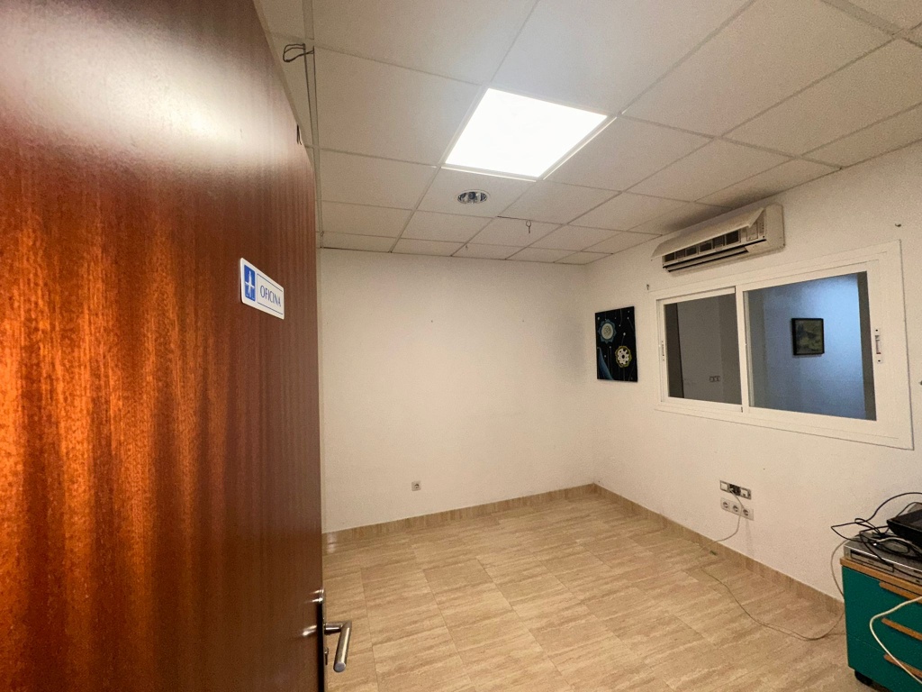 Local comercial diáfano de 94m2, ubicado en la Nucía. Cuenta con salida de humos, un baño con plato de ducha y una habitación utilizada como oficina. En las imágenes se puede observar una separación en el local en dos áreas, aunque se puede dejar totalmente diáfano sin inconveniente. Cuenta con una entrada a través de una puerta a pie y también tiene la puerta de garaje con persiana, perfecta para descargar mercancía, etc.