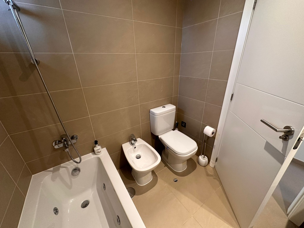Dispone de dos baños completos, uno de ellos con bañera de hidromasaje y bidé, perfectos para relajarse después de un día de playa o trabajo.