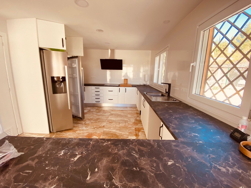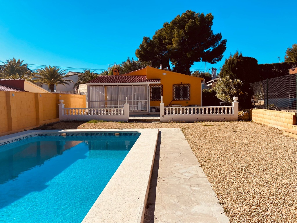 Chalet en La Nucía, con una planta principal y un semisótano. En la planta principal, hay un salón comedor con chimenea, cocina abierta, tres dormitorios, terraza acristalada y dos baños. El semisótano tiene otra vivienda con entrada independiente, con salón, cocina americana, dos dormitorios y dos baños. En el exterior, hay parking, barbacoa y piscina privada. Reformado en 2021.