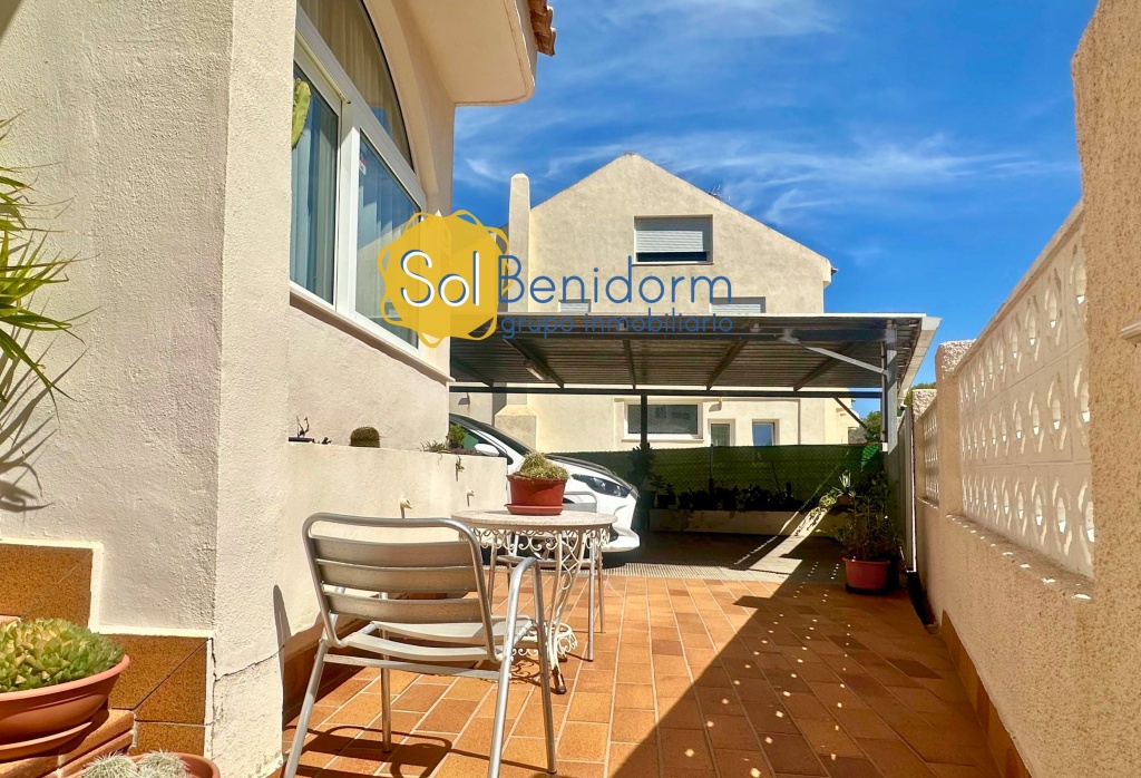 Ubicado en una de las mejores zonas de Benidorm, este chalet cuenta con todo lo que necesitas para vivir en familia, con espacio de sobra y todos los detalles muy cuidados. La vivienda esta equipada con placas solares, haciendo que la factura de la luz sea casi inexistente. En la planta principal nos encontramos un despacho/biblioteca actualmente utilizado como 2o salon aunque perfectamente adaptable a un amplio dormitorio, una amplia cocina totalmente equipada y en perfecto estado, amplio salón-comedor con chimenea, aire acondicionado y salida a terraza. En la planta baja cuentan con 75 m², encontramos un amplio salón con salida directa al patio/ jardín con barcacoa y cocina de verano, cuentan con un lavadero, 1 baño completo con bañera y un dormitorio extra, equipado con armarios y cama. En la planta alta, continuamos con 4 dormitorios (dos con aire acondicionado y uno actualmente como despacho, equipado con escritorio y armario empotrado), un dormitorio doble con baño en suite y salida directa a la terraza de la planta superior, equipada también con toldos, además acceso a una buhardilla, cuentan con unas escalares que se extienden y se recogen, dejando el pasillo totalmente despejado. En el exterior encontramos 2 plazas de garaje techadas dentro de la parcela de vivienda, cocina de verano con bbq y un jardín, con varias zonas muy cuidado. El chalet esta dentro de una urbanización cerrada con piscina comunitaria